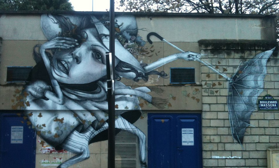 It was the brainchild of gallery owner and Street Art impresario Medhi Ben Cheikh. Supported by Paris officials, he already had a history of attracting popular street artists to his 13th arrondissement neighborhood to paint large murals. When he learned that a building overlooking the Seine was to be knocked down, he hatched this monumental “art-lab”.