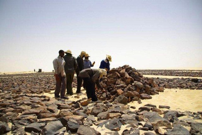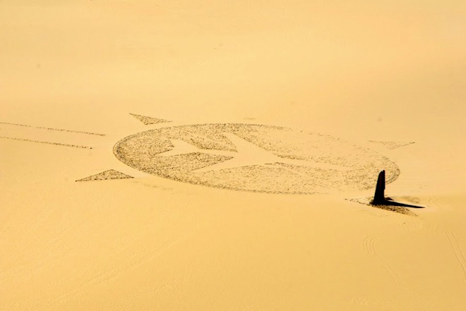 Hundreds of dark rocks were trucked in from up to 70 miles away and laid out in the shape of a DC-10 inside a compass. The memorial is visible on Google Maps.