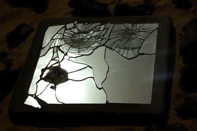 170 broken mirrors, each one representing one passenger, line the memorial’s circumference, and a plaque with each of the victims’ names was affixed to the upright wing.