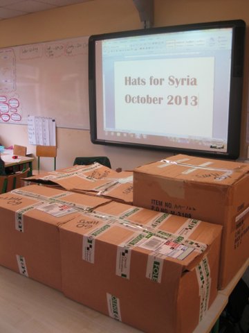 hats_for_syria_in_schoolA local teacher told her teenage students and 296 hats were quickly collected from Irish homes. A note was posted on the Cuidiu Facebook page, a national Irish parenting network, packages came in the post from all 32 counties of Ireland, with lovely hand-written notes. “This was my daughter’s favorite hat, I hope another child will like it too.”