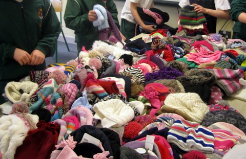 irish_children_donating_hats_for_syrian_childrenLaurie emailed me to ask if I could manage to gather around 200 hats for her husband to carry back in his suitcase?