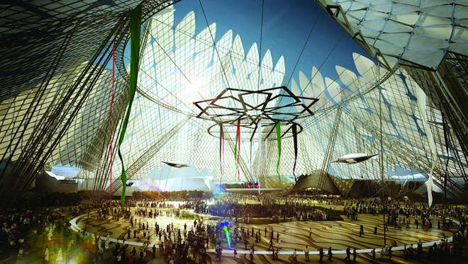 Renowned architects HOK and Populous have been picked to design the pavilions, which are inspired by the souk or Arab market. Larger pavilions will be arranged on the perimeter, while smaller booths will be aligned closer to the center, and the whole facility will be organized around a central distribution core.