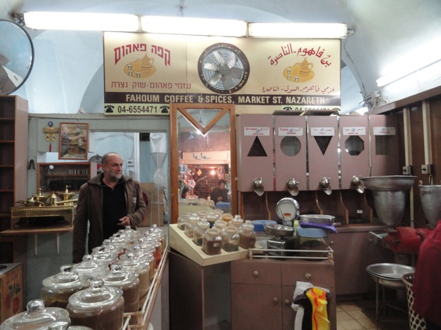 A shop in the Old Market today: Fahoum Coffee, for the best coffee in Israel: