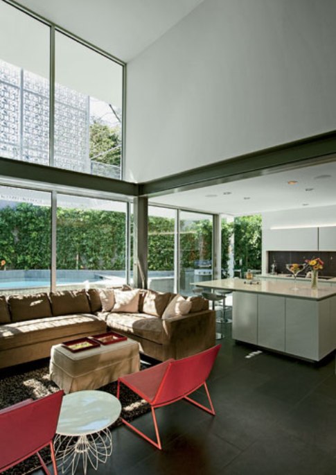 The structure is partially built into a hill, allowing creation of a separate apartment with a private entrance located on ground level, constructed of concrete. Hale, who has two grown children, told Architectural Record, “We wanted to think about it as multigenerational.”