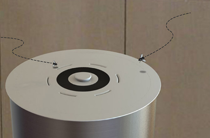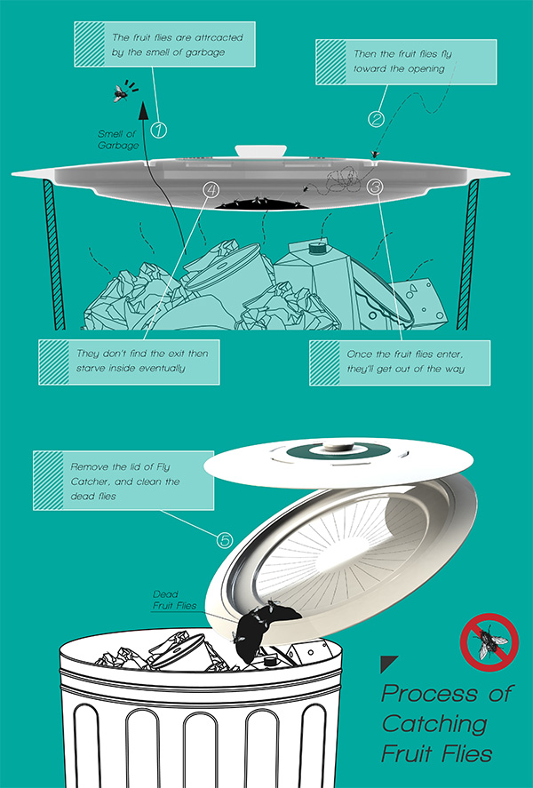 According to designers Chang Shih-hsun and Hung Jui-yuan the slits on the bottom of their “Fly Catcher” bin allow odors to arise, attracting the flies. Bugs “check-in” to this death hotel, but they don’t check-out until the owner empties the unit (after the bugs starve to death). Last year the duo won a Red Dot award for their prototype design.