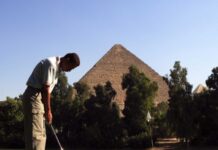 A new golf course is being built in the shadow of the Egyptian pyramids, the plans for its fairways and greens were recently unveiled by Thomson Perrett & Lobb, an architectural firm specializing in course design. It’s not the first links in Cairo, nor the first course near the Cheops, but Insha’allah that Egyptian environmentalists … Continue reading Golfing at the Egyptian Pyramids. What would Pharaoh think?