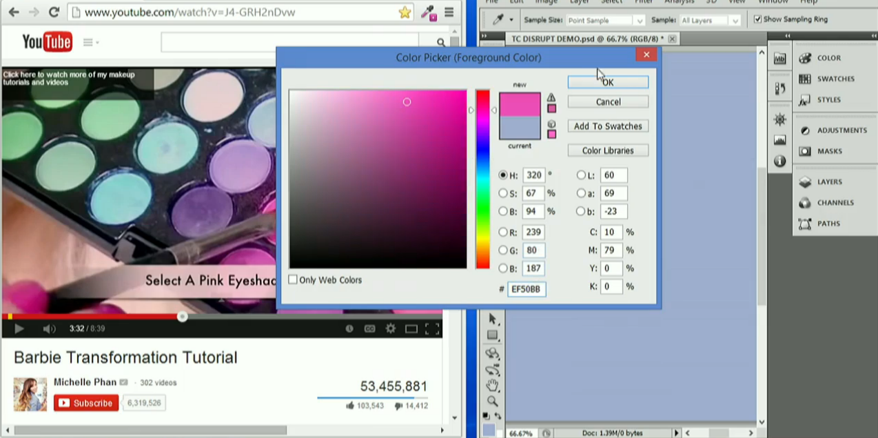 Here’s how it works.  First find a color you like (in her demo, she chose bright pink).