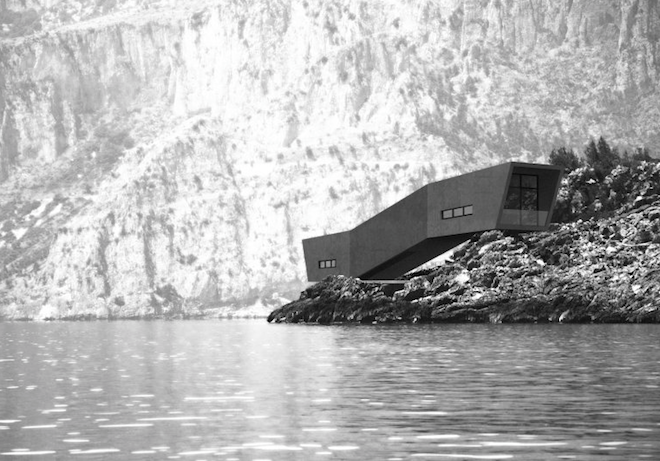 There’s something so compelling about this minimalistic villa shanghaied on the edge of a rocky Mediterranean landscape. One of five small villas conceptualized for varying landscapes by Italian design studio LAD, Villa Minima #3 is a distorted parallelepiped structure envisioned for a private residence in Turkey.