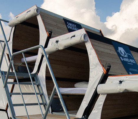 The fact that the bed can be used as a couch – the idea being that small groups of people can get together even apart from the action – will be less attractive to aid organizations or refugees than young festival goers. Seriously though, this is great, thoughtful design.
