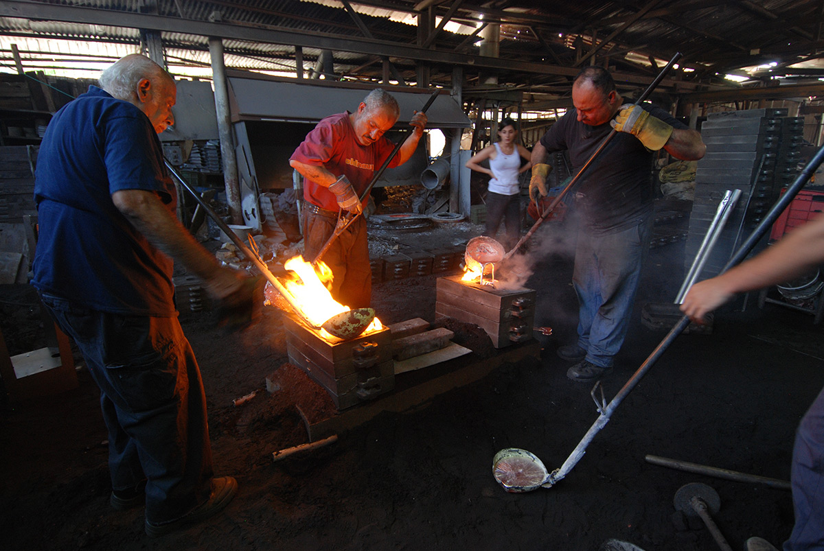 Hilla’s process preserves the natural tree form while the molten aluminum goes with the flow as it finds its way into cracks of the wood, burning the wood ever so slightly where the two pieces meet. One can find old aluminum to recycle into new designs, using aluminum cladding or the aluminum from old barn roofs.