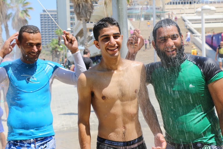 It’s known that if you bring people together with a common interest – music, food, or sport – everything else between them (tensions, family feuds, etc) evaporates and is secondary to the shared passion. I was lucky one day this past August to see such passion and peacemaking: there could have been sirens at any moment but Arabs and Jews were together to surf.