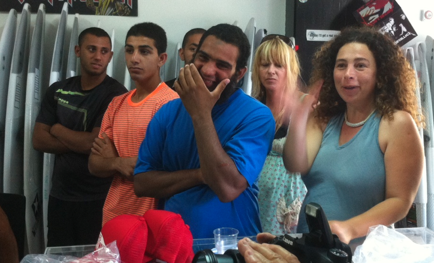 So what happens when you bring four young Arab surfers from Jasr al Zarka, an Arab Israeli coastal town with great surf to Tel Aviv for the day to learn how to teach surfing? Lots of fun, laughs and hope for the future.