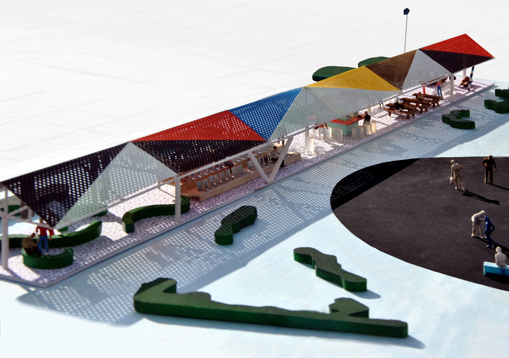 See the sketches above and below for their winning design Serpantina:  public urban spaces that could be made in the shade.