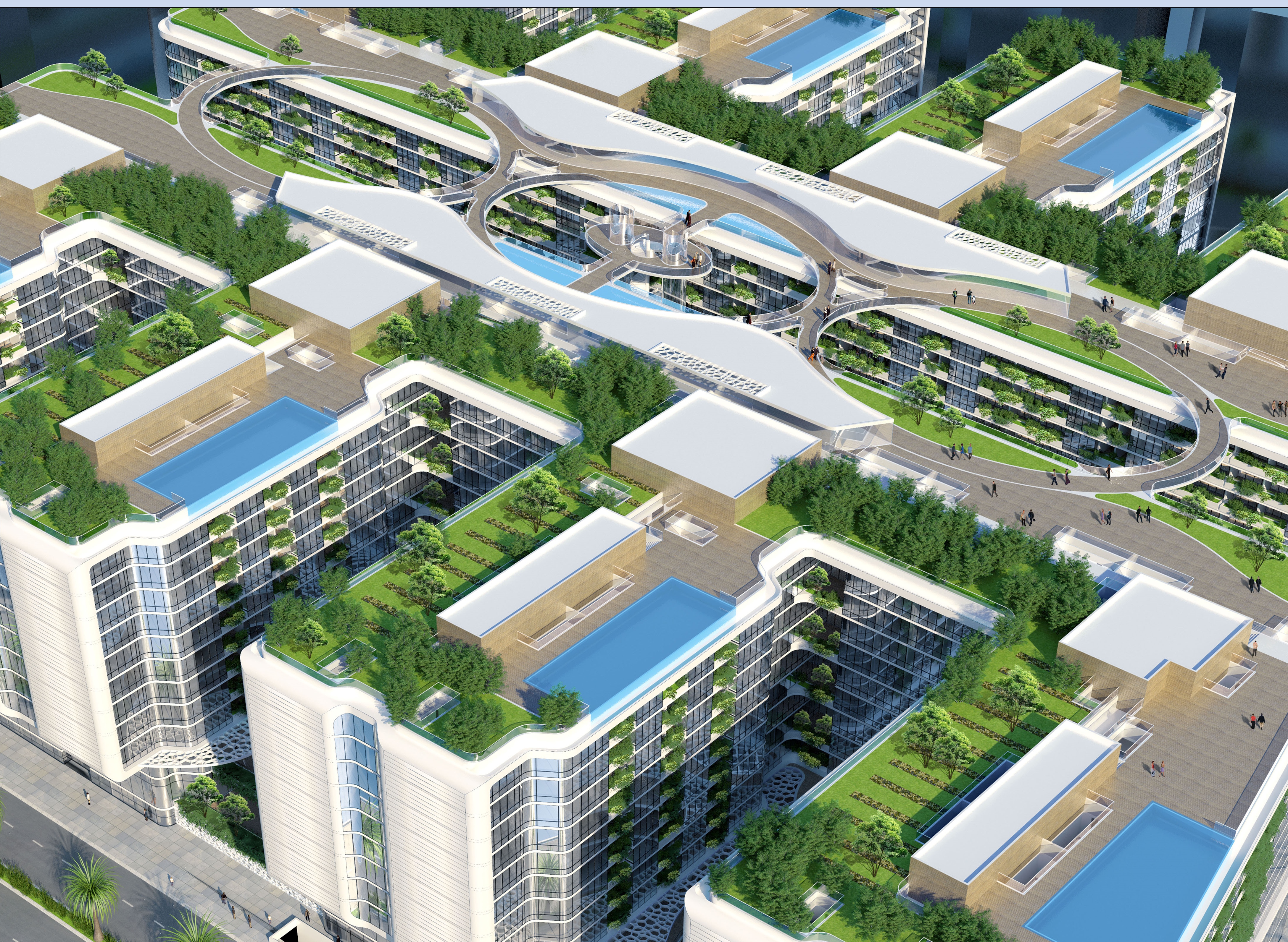 The development hopes to not only be beneficial for the environment, but for residents too. A community garden will provide a social and sustainable space for the building’s occupants. The project proposes to use the roof space as a ‘garden in the sky’ with playgrounds, sports area, food gardens, infinity swimming pools and orchards. The green roof is also a measure to compensate for the high density of the construction and will be an insulation coat above the residences to reduce the urban warming.