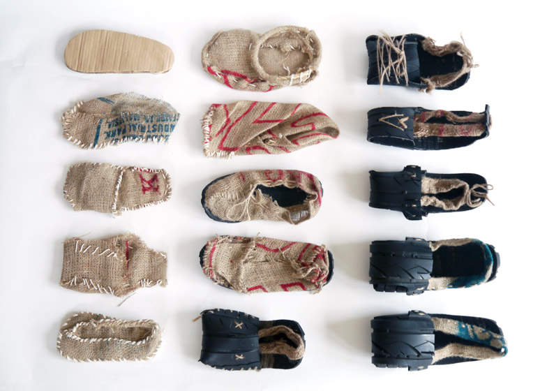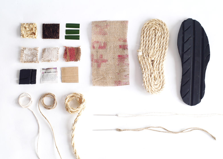 “Rwanda has an abundance of tires, a durable, flexible, waterproof material, which was suitable to be used for the sole of the shoe. Burlap sacks – used to import and export their produce – and hemp rope were other accessible materials that would be used to complete the footwear,” Kitley told Dezeen.