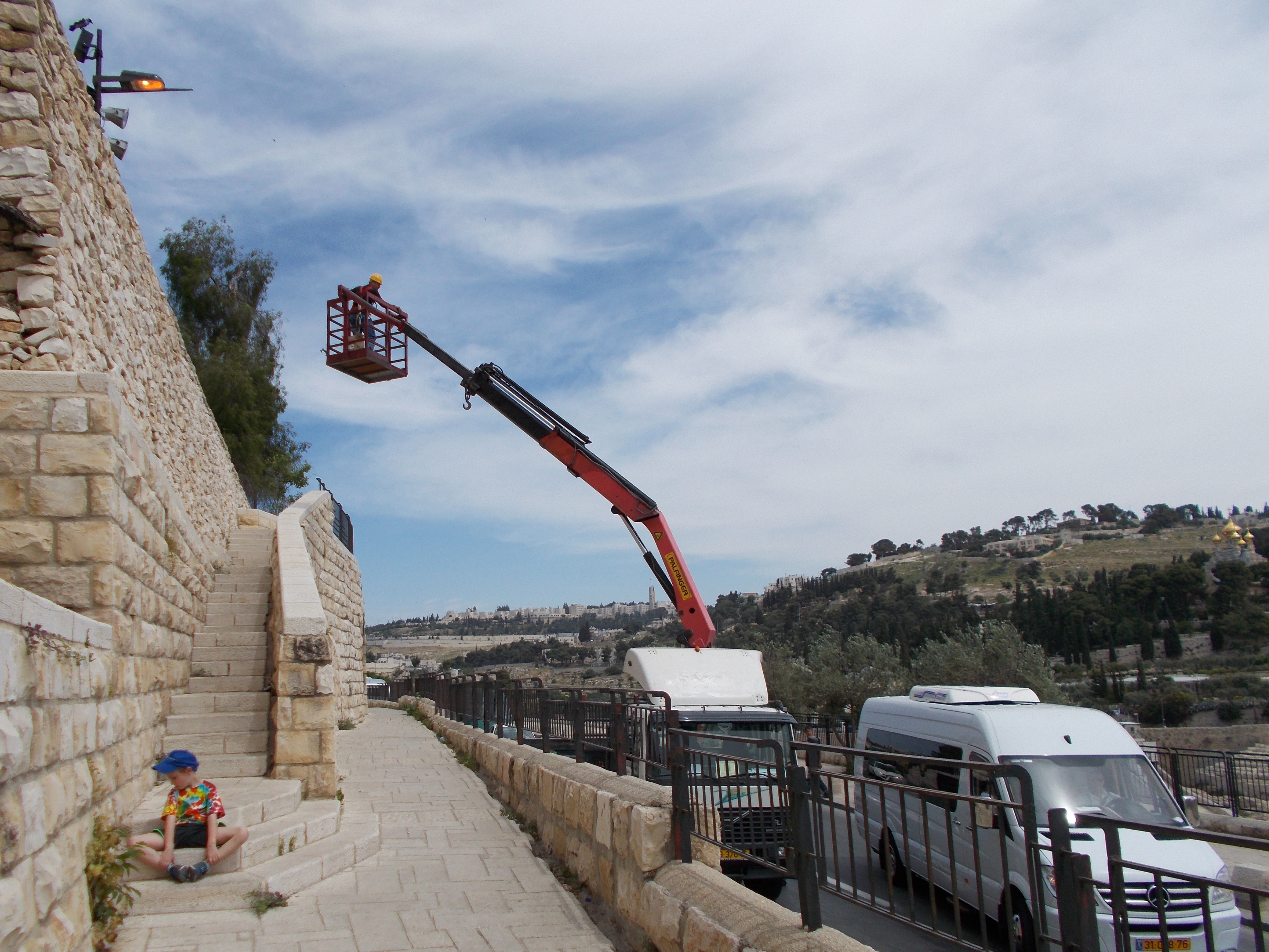 Maybe we can also assume that the man in the cherry picker is changing the light bulbs and maybe he needs the lights turned on to help him perform his job. But if Jerusalem were to replace these lights with LEDs, the dangerous task of working on live high-voltage streetlights won’t have to be performed as often.