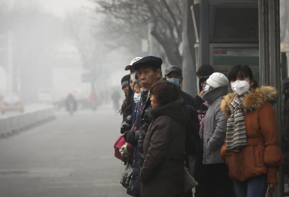 Photo of effects of dangerous air pollution levels in Beijing, by Yahoo News/Andy Wong: