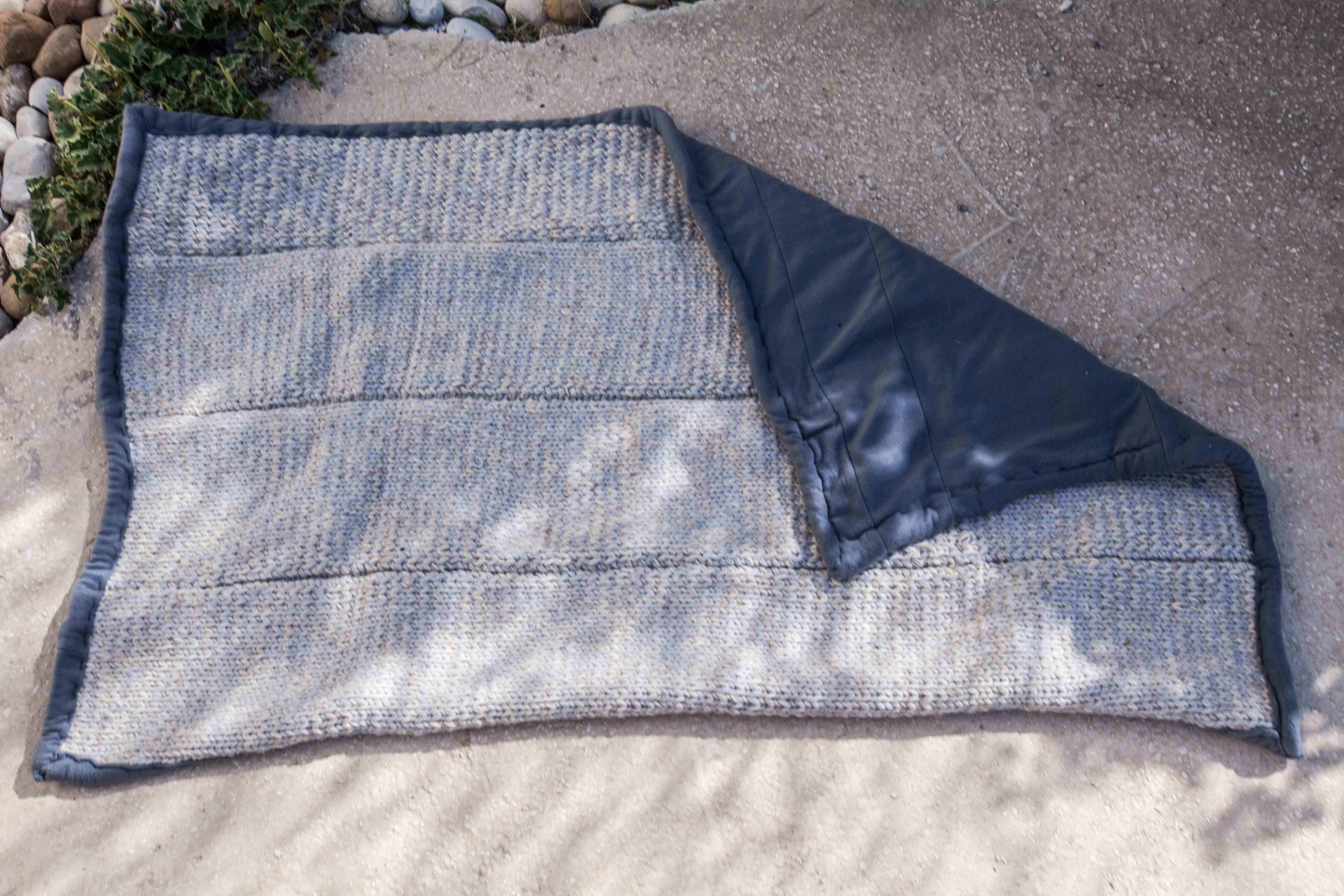 After the exhibition closed, the artist worked with the same women who created the piece to repurpose its 770 pounds of wool fiber into blankets. The material was sufficient to create 38 full-size knitted blankets, which were then distributed to Syrian refugees and Jordanians in need.