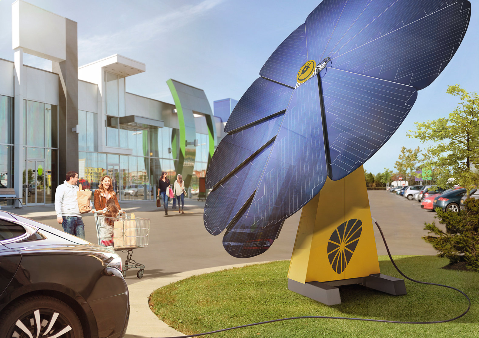 SmartFlower’s compact size, ease of installation; and advanced energy creating capability in its unusual solar panels creates up to 40% more electrical energy than standard solar panels. This makes it an ideal energy solution for locations where there is a lack of space for using conventional solar panels. People owning electric EV cars can also use SmartFlower for recharging EV battery packs during daylight hours. A perfect use example is a shopping mall or office park where EV vehicles can be receiving power while their owners work or shop.