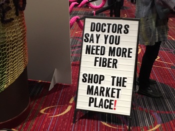 Vogue Knitting Live! is a three day event that occurs annually in several US cities.  It is the Burning Man for fiber enthusiasts, a high energy festival featuring classes and lectures and fashion shows. Anchored by the Marketplace, an enormous and spirited souk selling buttons, patterns, organic handcreams, every knitting and crochet accessory on the planet, and of course – yarn. I went to Manhattan event last weekend. A theme arose from the crafty chaos: use creativity for a higher purpose.