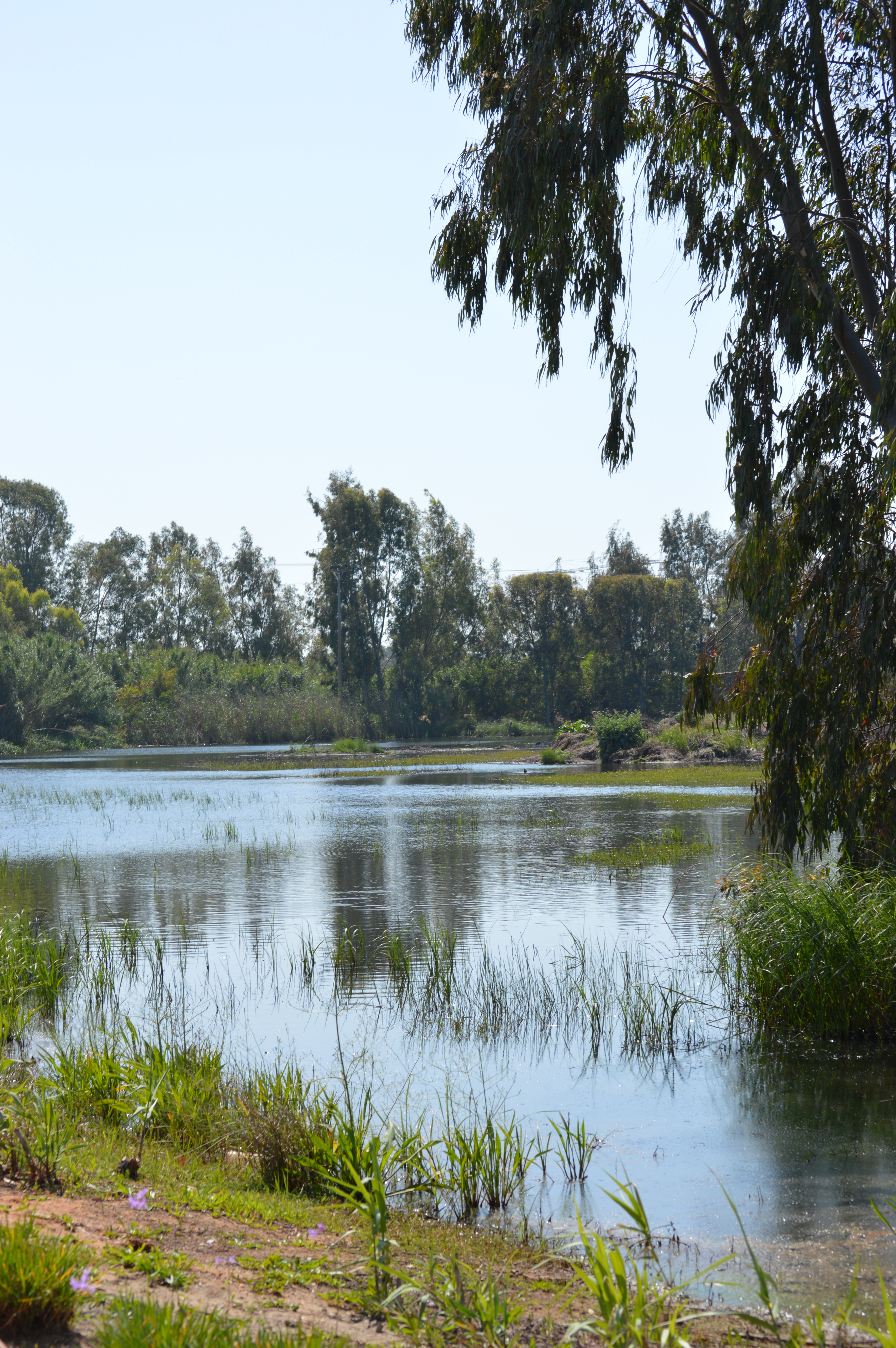 The rippling pools are beautiful. Reeds and flowering plants fringe the water edges. Tiny crabs crawl through the shallows. Frogs croak in bass voices. Iridescent dragonflies flash green and red wings as they hover and dart. Snails and caterpillars creep among the leaves. Mallard ducks, Ibis, lapwings, Egyptian geese and other migrant birds enjoy the abundant prey and shelter that the reeds and bushes provide. A new food chain springs up, attracting small mammals and migrating birds who come to visit, and stay while the water lasts.