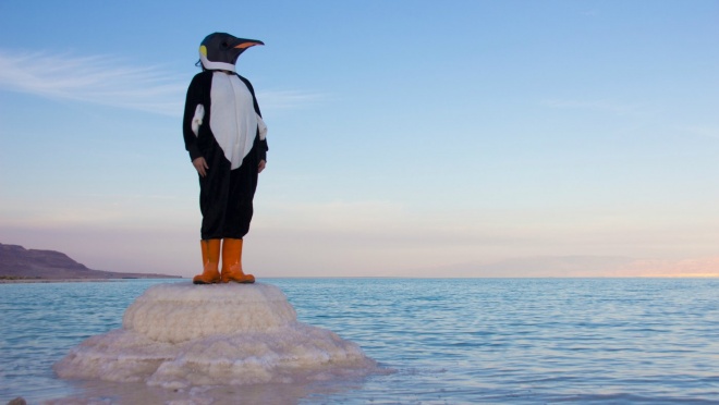 Of course animals don’t live in the Dead Sea, except for maybe a strange bacteria that can tolerate the high salinity and mineral content. If so what were penguins doing at the Dead Sea and in Israel’s desert? In fact you might have seen penguins exploring a city near year earlier this year or even today. The ruse is Greenpeace’s way to say wake up, people. We need to build a sanctuary in the Antarctic Ocean as ice caps start melting.