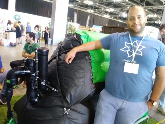 The model on display even had a portable toilet attached to it, similar to one used in boats and campers. “It is possible to use human waste, including toilet paper, for making biogas” says one of the company’s marketing representatives, Oriya Barkai, Regional sales Manager (see photo}. who was present at the Cleantech fair.