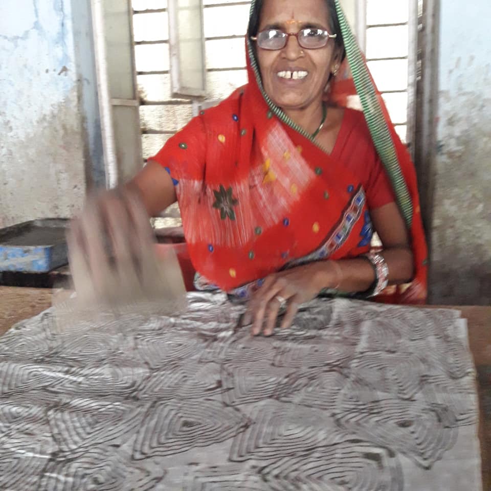 One of the craftswomen that works with Ondi to create the Atelier Om look.