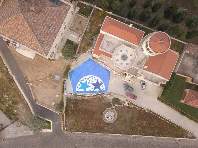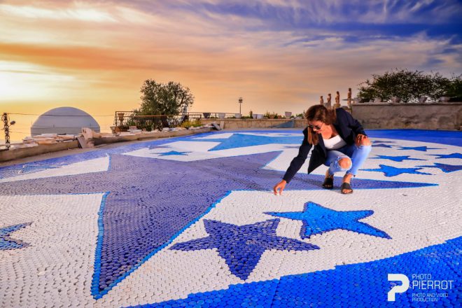 Calling her followers to spare all bottle caps three months ago, Chaptini started to receive thousands of these from inside and outside Lebanon turning the initiative to a regional environmental cause. For her recent attempt, Chaptini collected no less than 400,000 bottle caps of five different colors including various shades of blue and white. She selected a public park next to her parents’ house in north Lebanon to create the two-dimensional mosaic depicting an image of a crescent made from bottle caps.