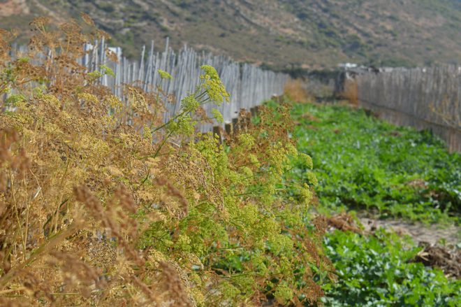Hedges of fruit trees and shrubs on the lagoon barrier protect the cultivated plots from wind and sea spray, help slow down evaporation and fix the sand. Such a multifaceted system makes it possible to grow crops all year round without artificial water supplies, even during periods of drought.