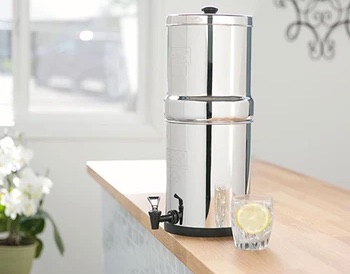 Everyone’s favorite is the Big Berkey. Perfect for couples and small families, it’s versatile and accommodates just about any situation. The Big Berkey holds 2.25 gallons and is 21 inches tall by 8.5 inches wide. It comes with two Black Berkey filters, but can hold up to four. Couples or families are easily served by the Big Berkey. It’s also great for active individuals who drink a lot of water or frequently have guests over. For storage or transport, the upper chamber fits into the lower chamber to make it 13 inches by 8.5 inches. First-time buyers usually purchase a Big Berkey because it’s suitable for many living situations. It’s no surprise to see Big Berkey top the list of best countertop filters on the market, according to Waterfilterspot.