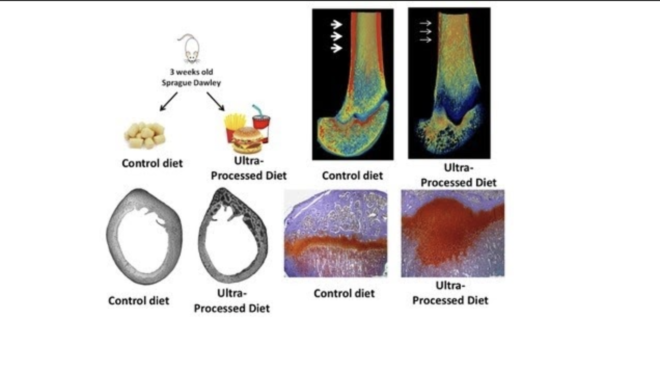 The Hebrew University study provides the first comprehensive analysis for how these foods impact skeletal development. The study surveyed lab rodents whose skeletons were in the post embryonic stages of growth. The rodents that were subjected to ultra-processed foods suffered from growth retardation and their bone strength was adversely affected.