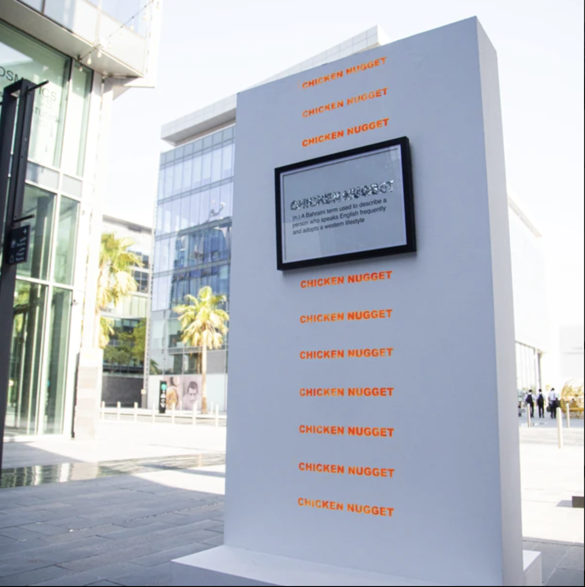 Some parts of the installation aim to explain what’s going on between the lines in the Middle East, like “chicken nugget” an expression for a local who speaks and acts “western”.
