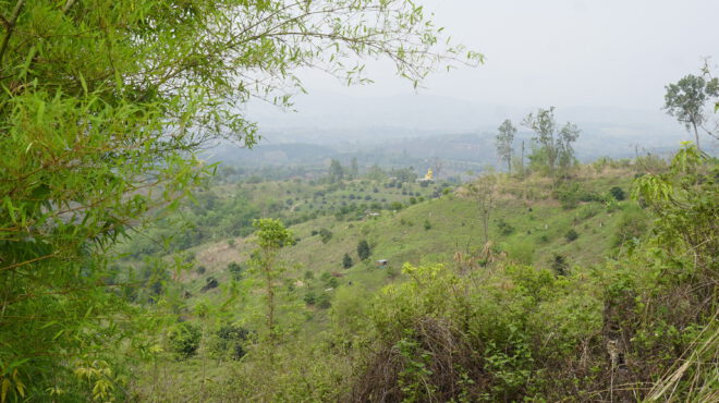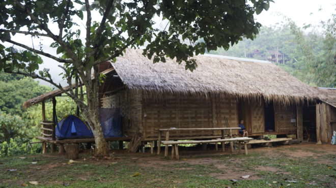 An early morning with the dogs barking and roosters about, then we break-fasted and hiked around the village where Rung taught us about the village heart, the huja rawl. Up into the hills we visited the gardens of Sukhum, where fruits like mangoes grow. We trekked through to a Lahu village and then a Karen village –– and then started our drive to Thaton. We overnighted in a hotel and woke the next day to meet the Akha Tribe.