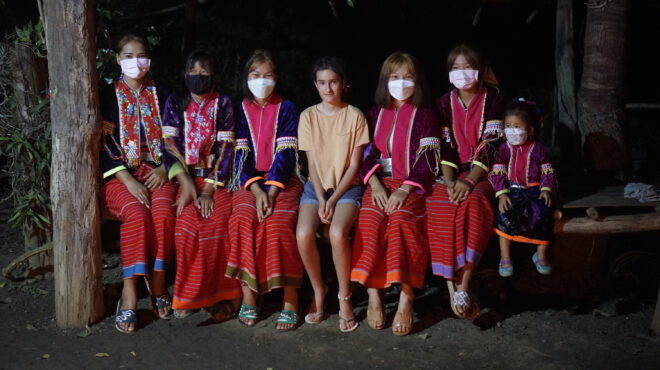 The Palong tribe, we learn, has its own colorful background. Not long ago they moved from Myanmar to Thailand and are distinguished by their rattan hoops and silver belt worn around the waist. The costume is a reminder of a bird, a mystical creature from which the Palong people are believed to be derived.