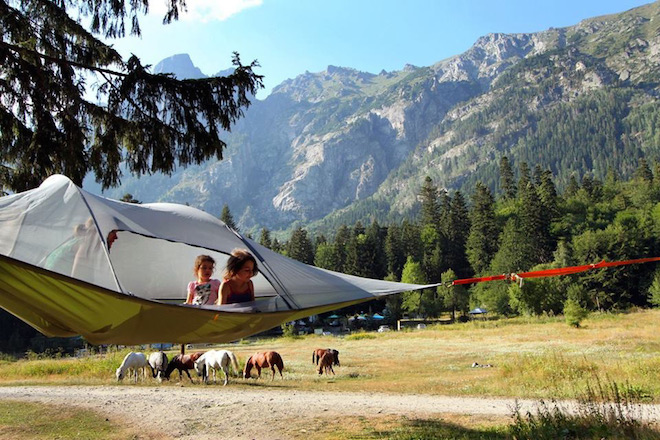 This two-person tent by Tentsile, called Connect, does just what its name implies. If you and your two friends each buy one you can connect them in a triad forming a larger triangle.