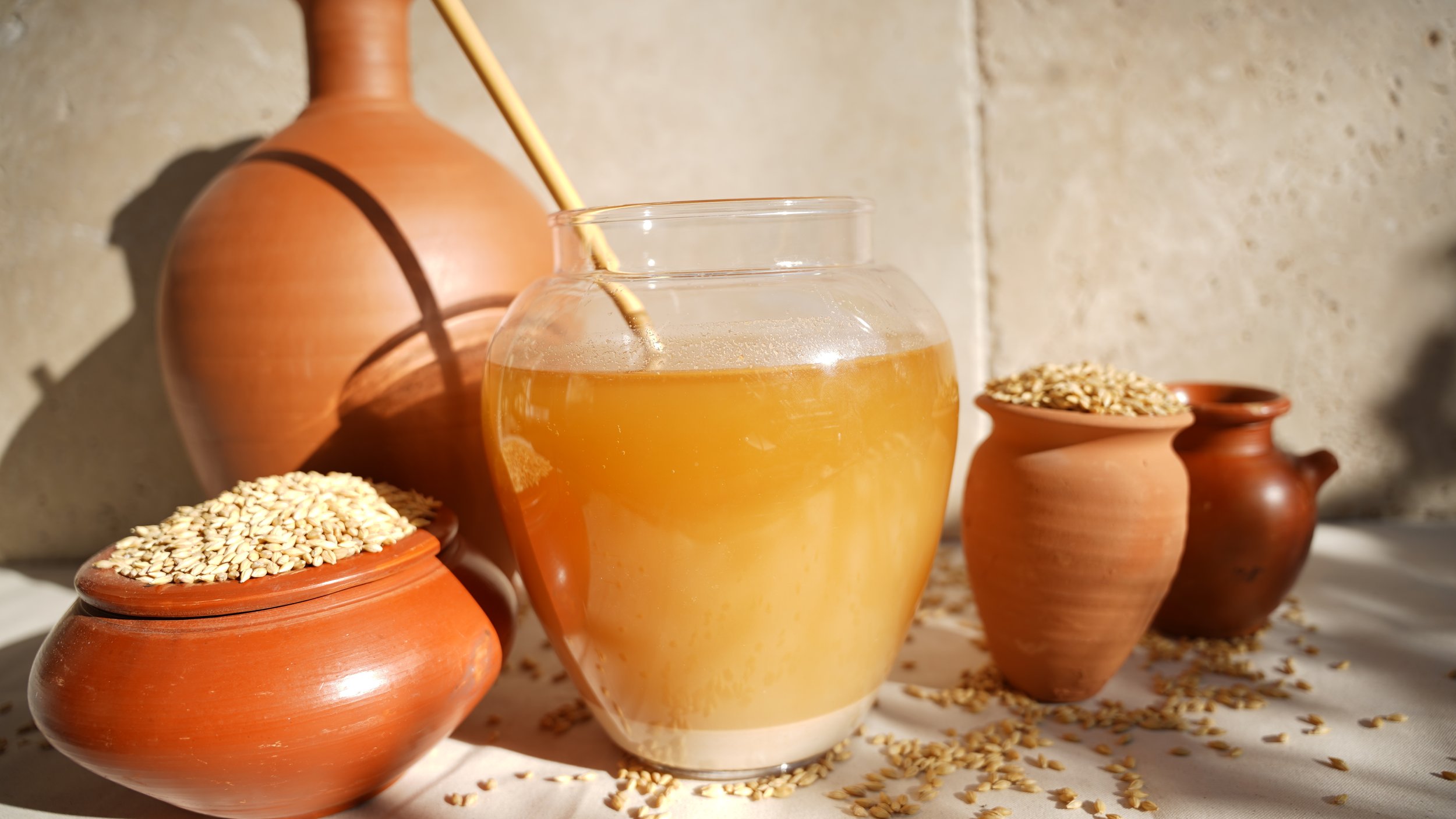 Barley was the grain used to provide the nutrients and sugars needed to ferment beer. It was used in the shape of barley bread dissolved in water, plus sprouted barley grains. It was a labor-intensive process, each ingredient matured separately and added in stages. Emmer, an ancient wheat variety, was added as well. Emmer is still around and is known as farro today.