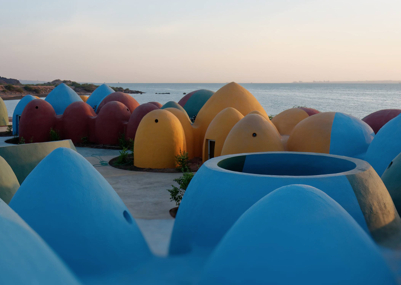 The Majara Residence (Persian: اقامتگاه ماجرا, where Majara translates to “adventure”) is a complex of roughly 200 colorful superadobe domes built on Hormuz Island as a seaside eco‑tourism project. Designed by ZAV Architects, it was completed around 2020.