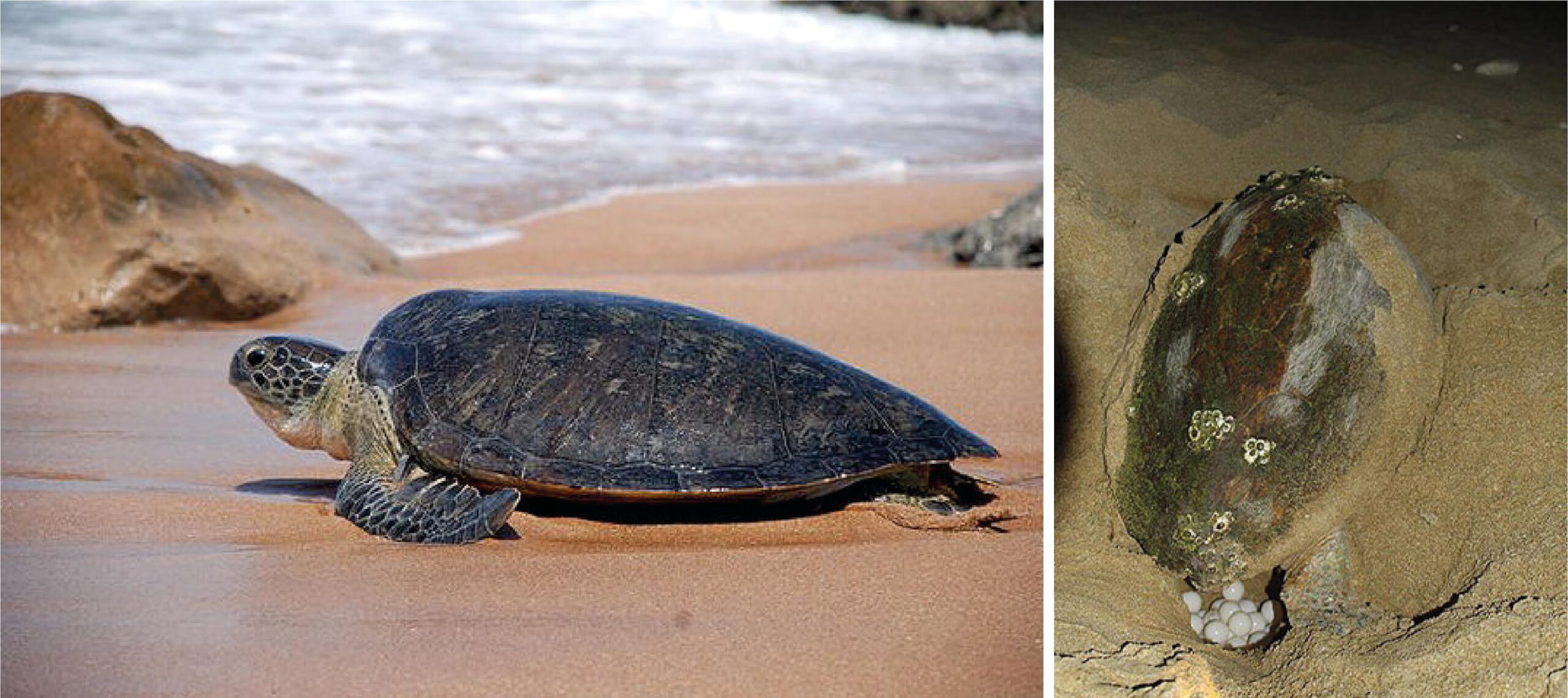 This study mentioned above confirms regular nesting events, the relative success of hatchling survival, and the pristine condition of some of the island’s beaches. Additionally, the paper “Turtles in Iranian Beaches of Oman Sea during 2008–2010” (BEPLS, 2014) highlights the simultaneous presence of both hawksbill and green turtles on Iran’s southern coasts, including Hormuz, and notes that numerous nests of these species have been observed on the island’s shores in past years.