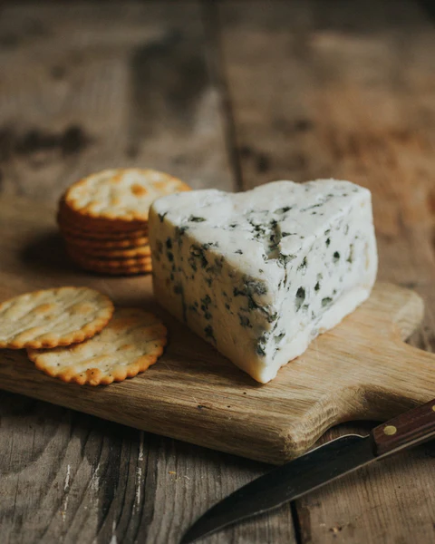 One of France’s most renowned blue cheeses, Roquefort is made from the milk of Lacaune sheep and aged in limestone caves. Legend says a shepherd abandoned his lunch—bread and fresh ewe’s cheese—to chase after a woman. Months later he returned to find the cheese transformed by blue-green mold into what we now call Roquefort. Its veins create a sharp, smoky tang that pairs beautifully with nuts, figs, or crusty bread.