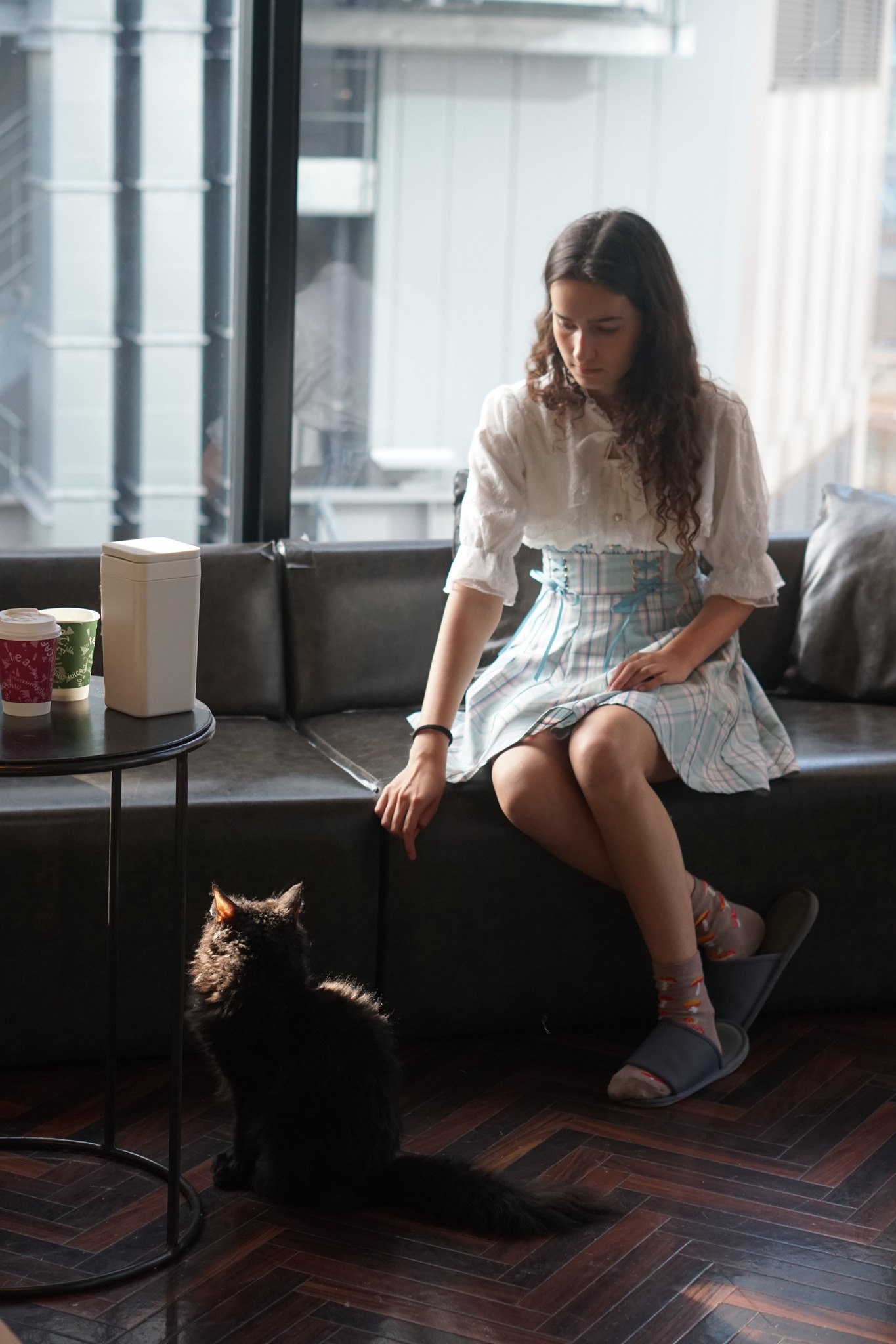 Young woman with a Japanese cat