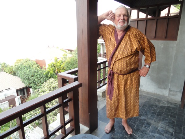 That’s my dad below trying on his kimono. He surely loved it at The Kala.