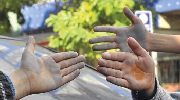 That bluish stuff on their hands? Sticky powder that can’t be washed away with regular cleaning products — and is probably coming out of one...