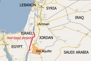 (A map of Jordan and the surrounding region highlighting the Disi Aquifer and the proposed Red-Dead project.) With worrying frost alerts in Jordan getting farmers...