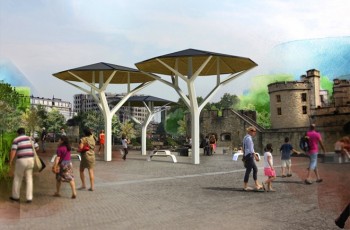 Nature solar shelters are hybrid acacia “trees” sprouting electricity and shade